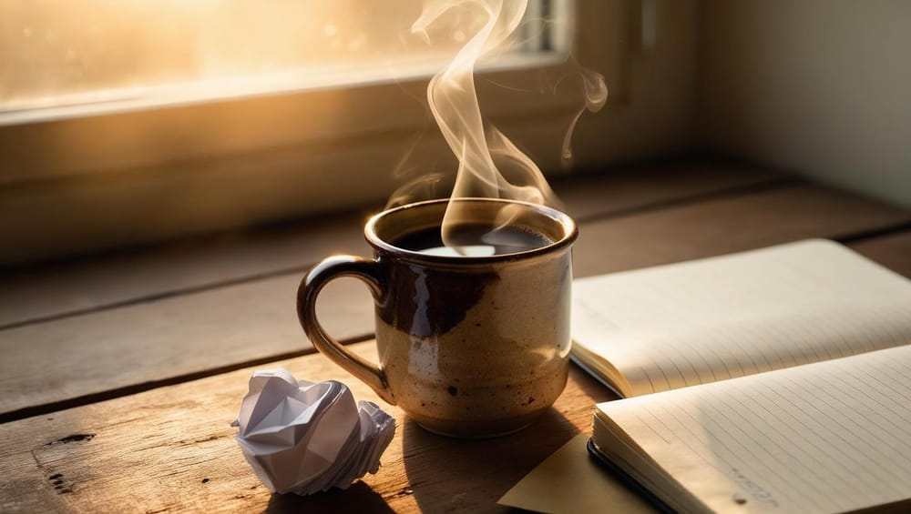 Taza de café en mano, aquí estoy... sentado donde empecé y mal terminé.